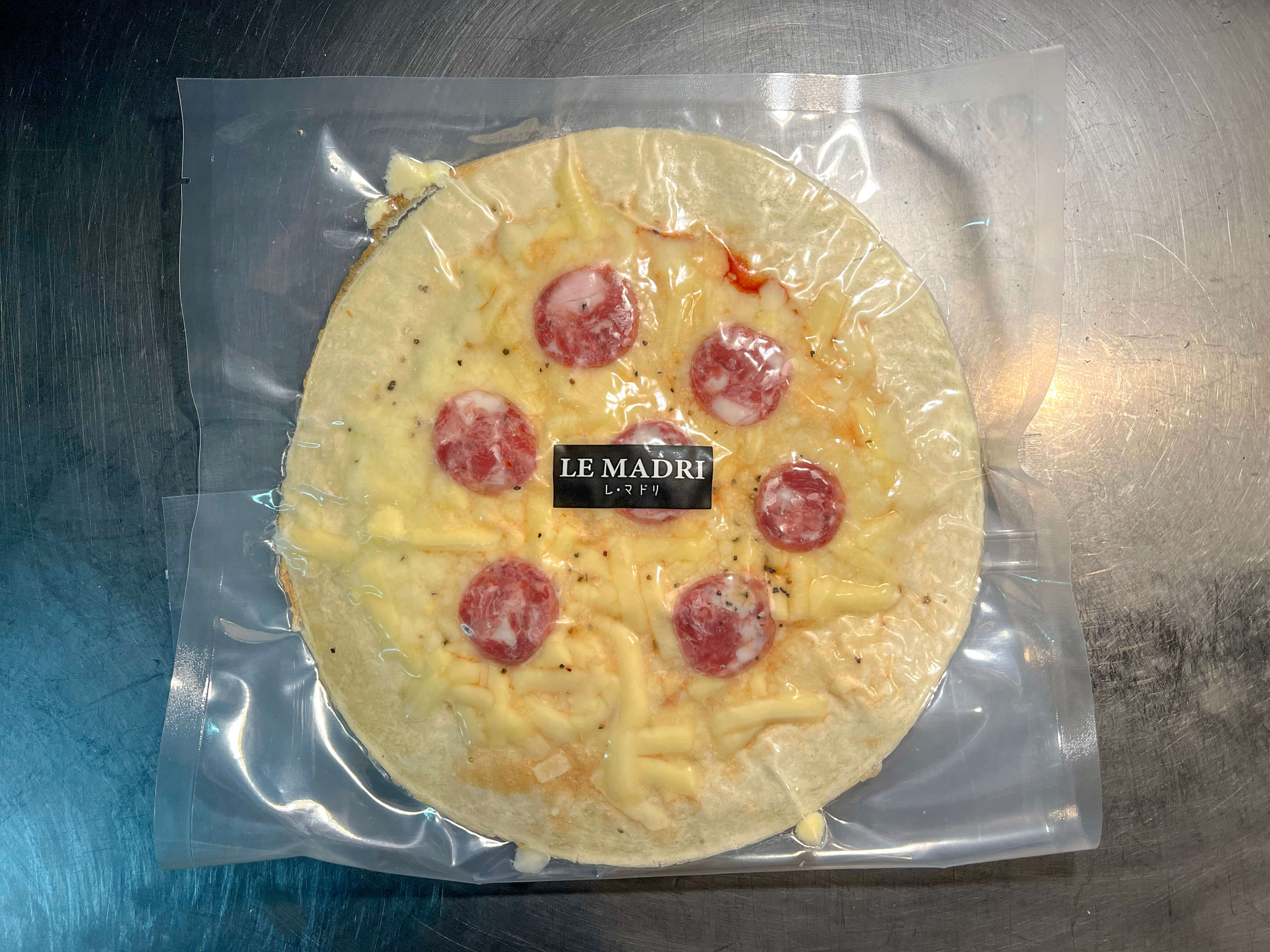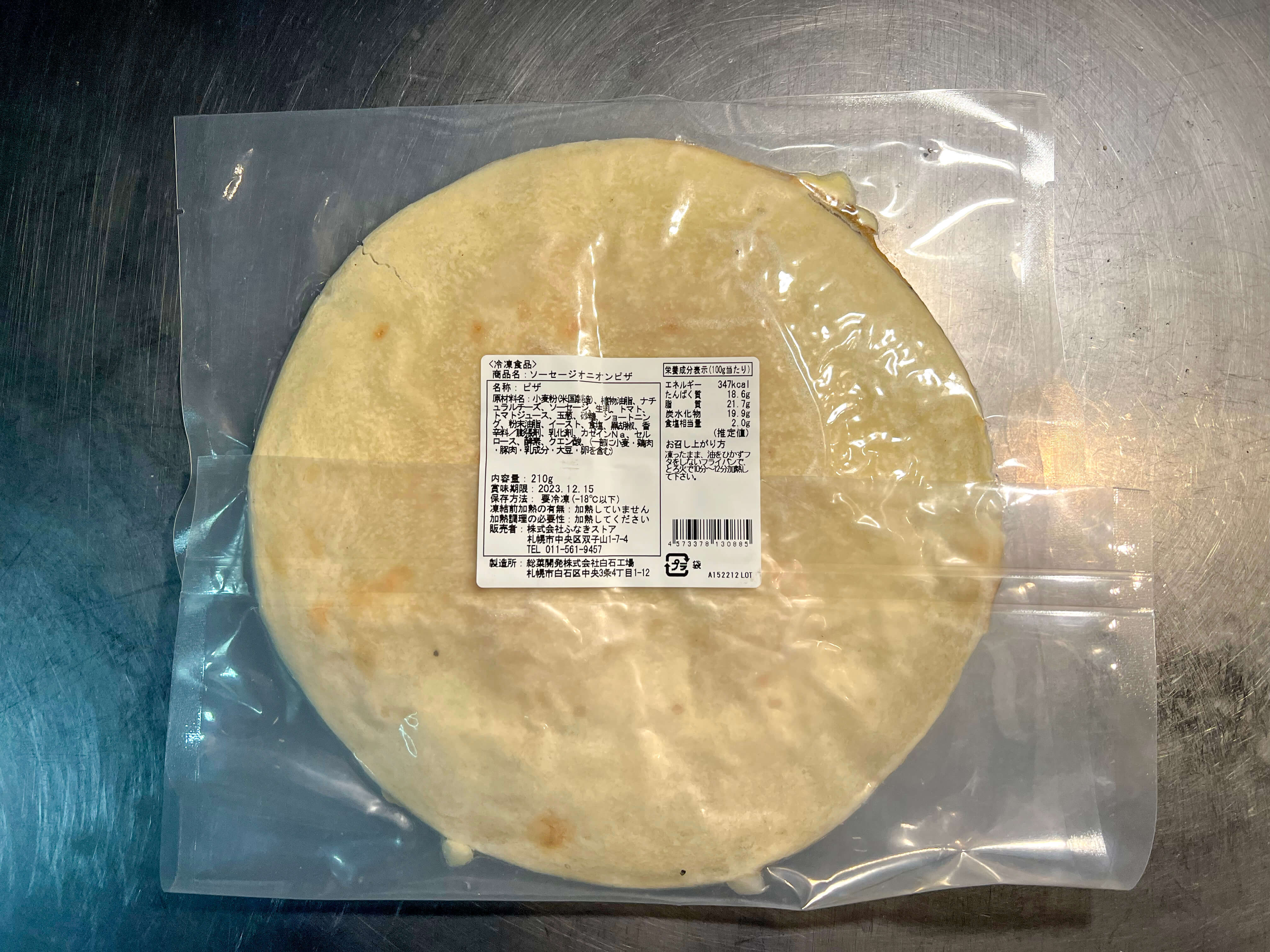 ・原材料名:小麦粉(米国製造)、植物性油脂、ナチュラルチーズ、ソーセージ、生乳、トマト、 トマトジュース、玉ねぎ、砂糖、ショートニング、粉末油脂、イースト、食塩、黒胡椒、香辛料/膨張剤、乳化剤、ガゼインNa、セルロース、酵素、クエン酸(一部に小麦・鶏肉・豚肉・乳成分・大豆・卵を含む)